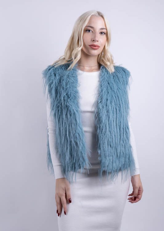 Γιλέκο Γούνα Γαλάζιο